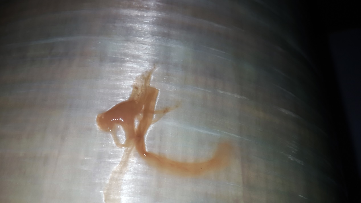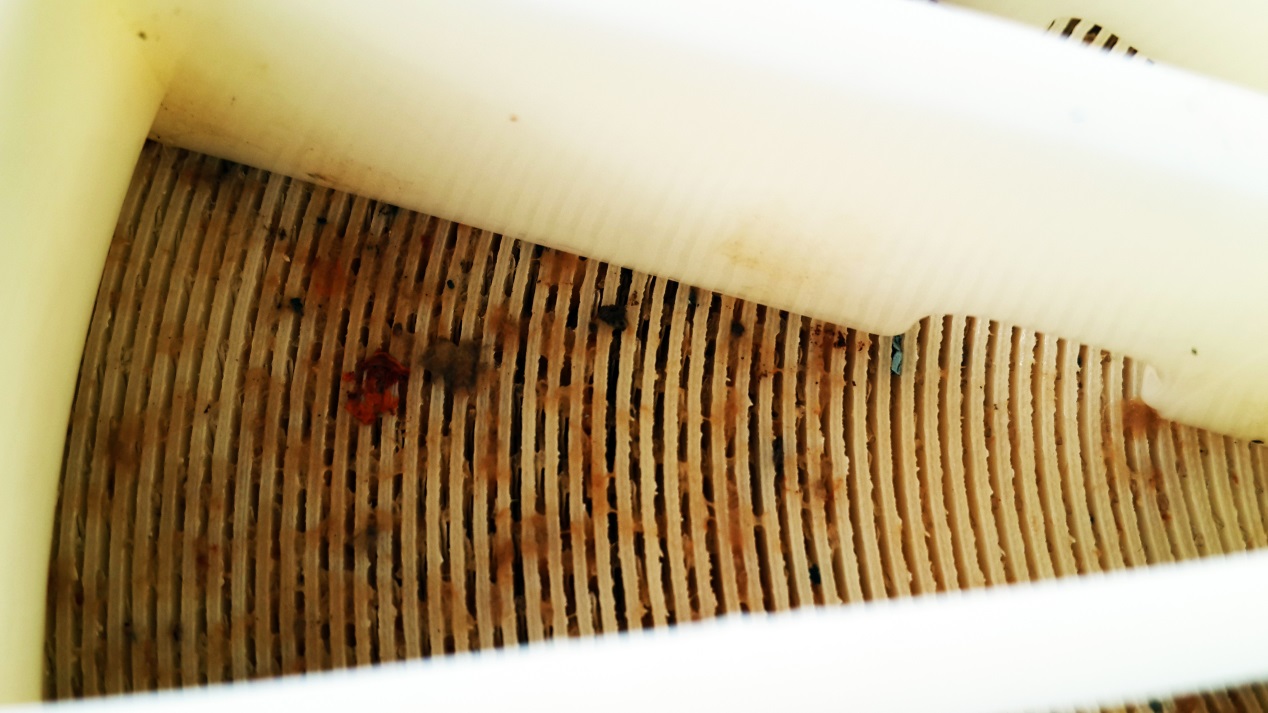 圖一 清洗前反滲透膜端面上的固體顆粒和黃色粘稠物